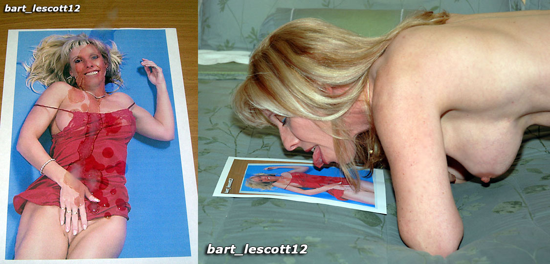 Tribute Pictures are when guys print out their favorite picture of you and then masturbate and CUM all over it. Then then take a picture of their "work" and send it to you in "Tribute"! It isn't anything new, and guys have been Tributing women for many years, but I like to think I handle it differently from other women. For one thing, most women don't even thank the guys for all their hard "work"! Not only do I always thank them, I do a picture in return to show my true thanks. Below are just a few examples of the well over 1000 Tribute pictures, and videos, that have been done for me over the years, along with my pictorial response! ;)